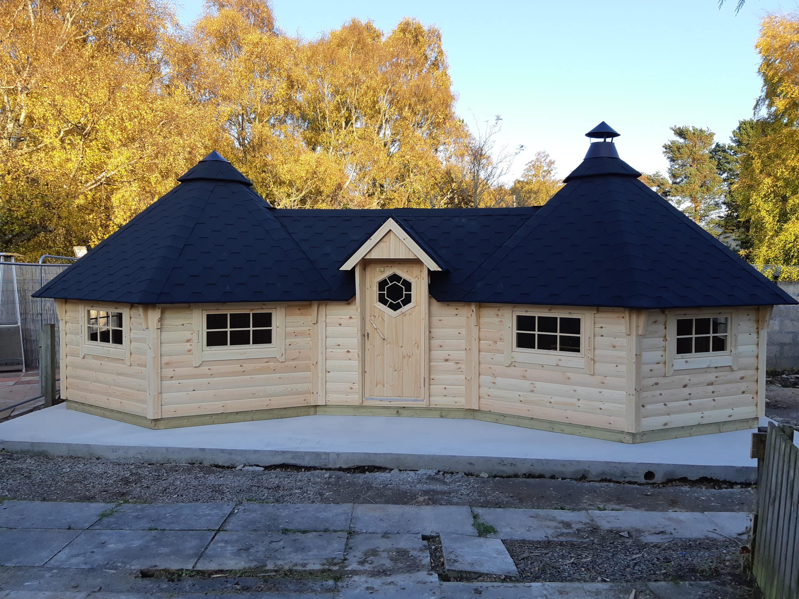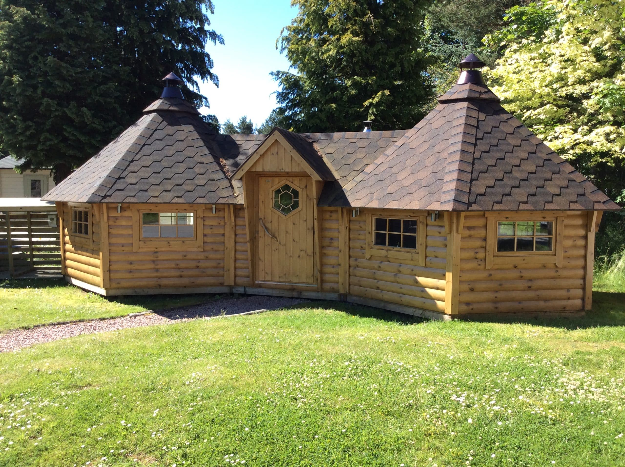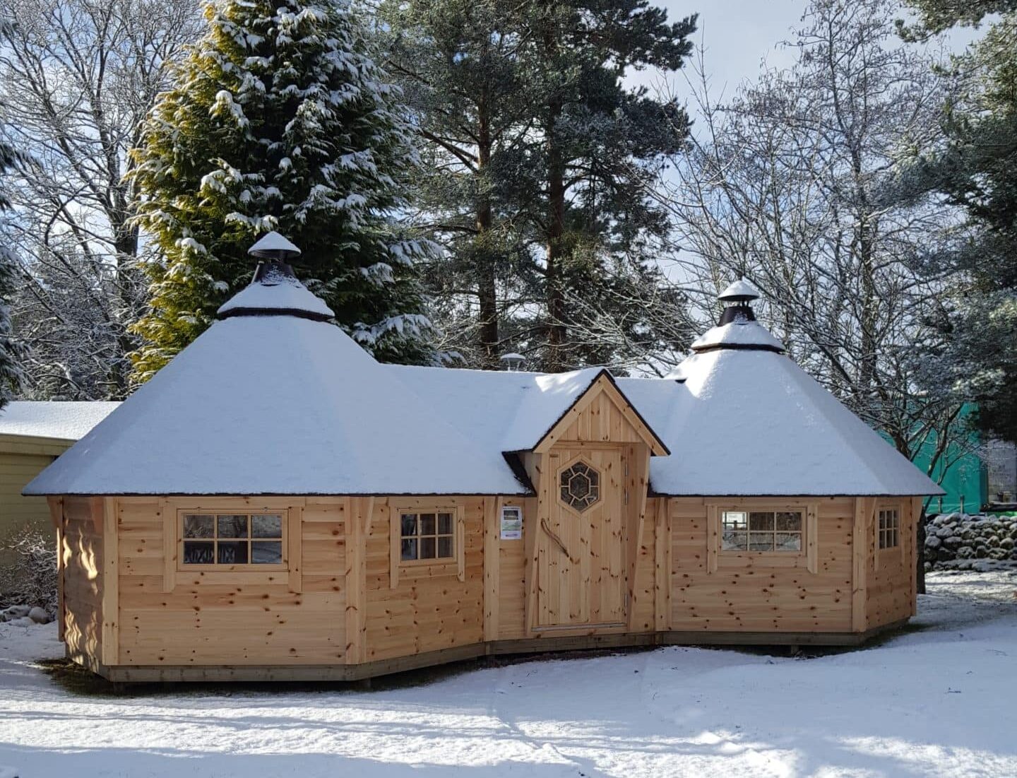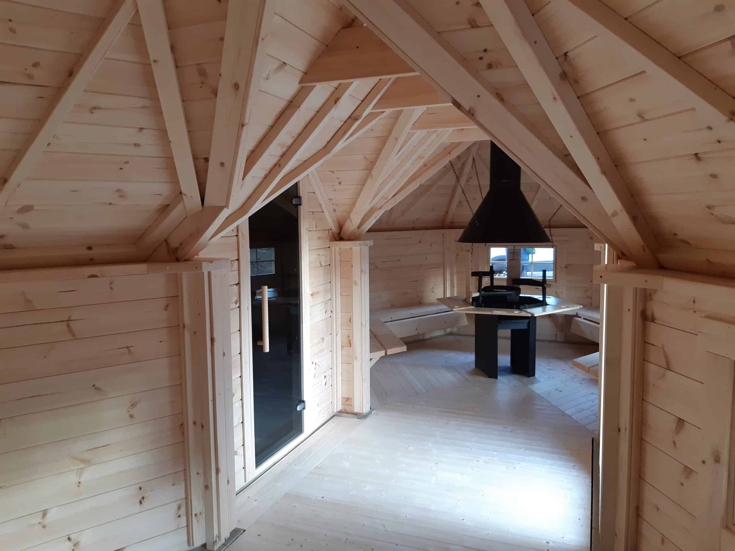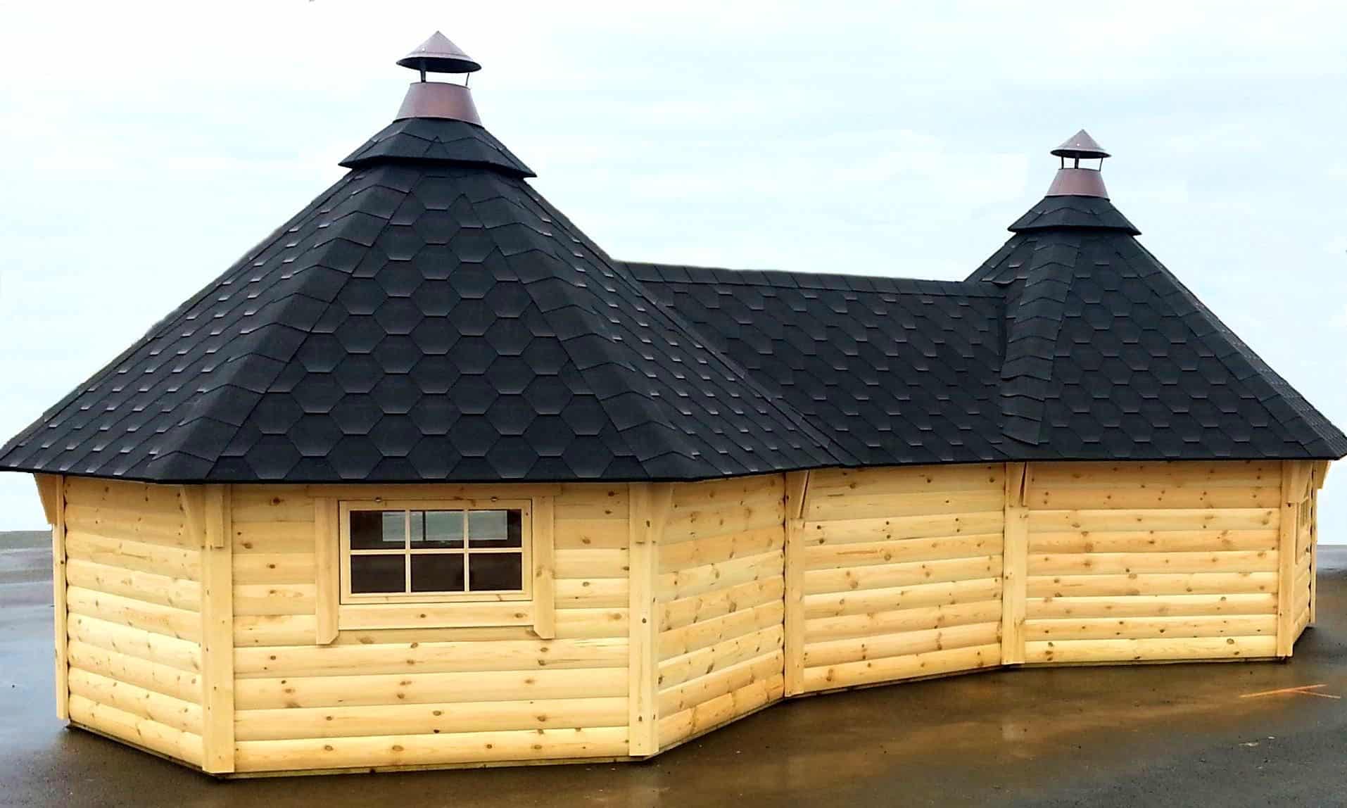 Våra Premium-modeller har marknadens högsta kvalitet, glastak / takfönster finns som tillval. Hos oss får du: Marknadens bästa och mest beprövade design och kvalitet. Komplett finsk grillkåta i element med färdiga väggar, tak och golv. Levereras i hela Skandinavien och vi ordnar med din leverans när det passar dig. Väggarna är tillverkade av halvrund 45 mm x 145 mm furu av högsta kvalitet. Vägghöjden är 140 cm (mätt utvändigt från marken till taket). Alla väggelement är likadana vilket gör att du själv kan bestämma åt vilket håll du vill placera fönstren. Alla fönster är öppningsbara ( gäller ej takfönster ) Taket är tillverket i element, designade med blocksystem som klarar höga belastningar, vilket är särskilt lämpligt för nordiska snöförhållanden. Takelementen är tillverkade av 18 mm x 145 mm panel monterad på ram 45 x 45 mm, med förmonterad svart takshingel. Stugorna levereras med golv i färdiga moduler, tillverkade av 17 mm x 94 mm som läggs på plats efter montering.