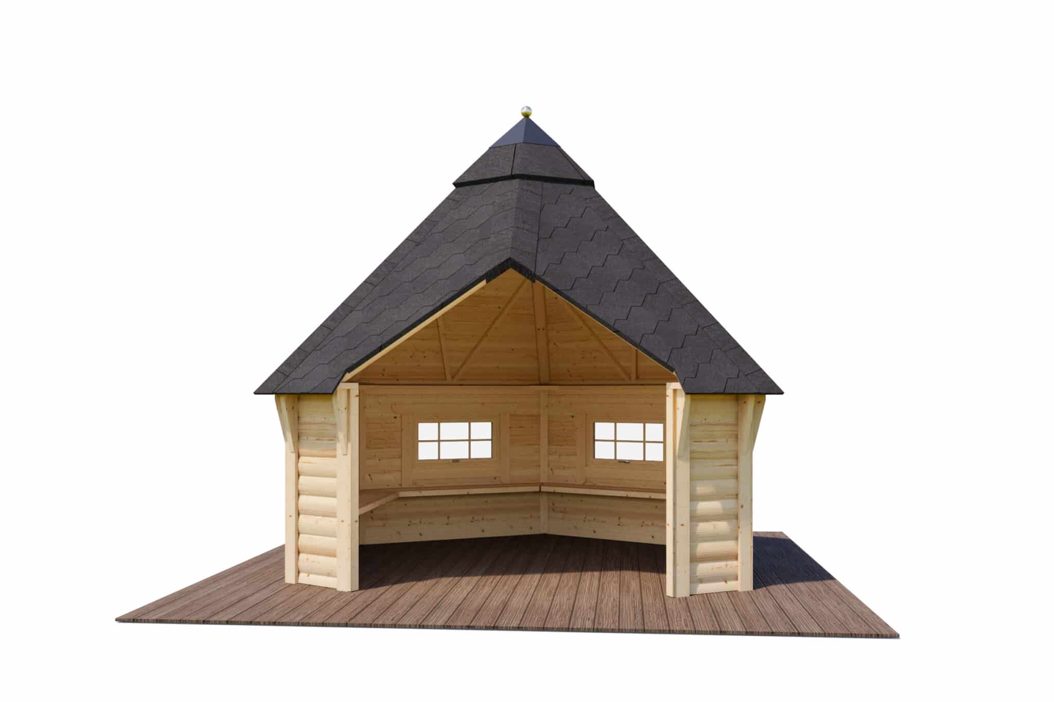 Komplett byggsats med bänkar längs med väggarna, bara montera ihop och njuta. 😃